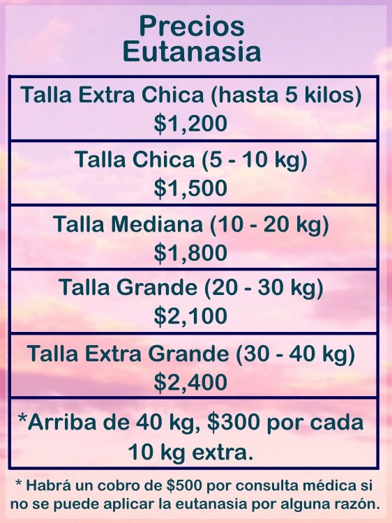 Nota: NO hacemos Eutanasia a Mascotas Sanas.